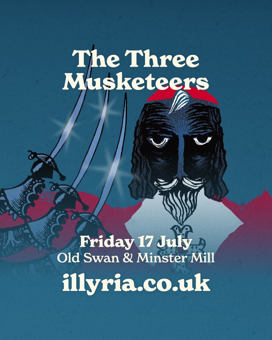 Join us at Minster Mill for a spirited open-air performance of The Three Musketeers, brought to life by the acclaimed Illyria Theatre Company. Set against the backdrop of our beautiful grounds, this is storytelling with a little swagger.